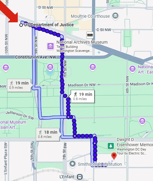May I Distract Your Attention?Justice Dept is about 0.8 miles north. A nice 15 minute walk.Doosh DooshenbergMar 02, 2026ShareYou want to be here. Ask for Pam.PreviousNext